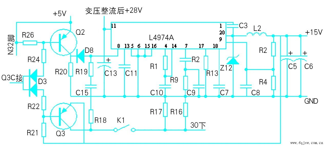 1、 檢查底板,用萬用表測底板各電壓,發(fā)現(xiàn)15v明顯偏低,查8腳軟啟動電壓是0.5v(正常值為3.85v)經(jīng)查5v正常,q2觸發(fā)電壓正常,用萬用表測q2有故障換新后電壓回復正常,15v輸出正常,恢復變頻器接線,輸入?yún)?shù),啟動變頻器運行正常。